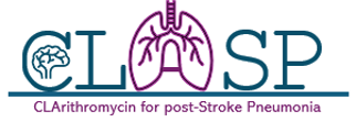 CLASP is a prospective, randomised open-label blinded-endpoint (PROBE) phase 3 multicentre trial with a primary objective to determine whether 5 days of treatment with clarithromycin in addition to usual non-macrolide antibiotic treatment for post-stroke pneumonia (PSP) improves functional outcome at 90 days.