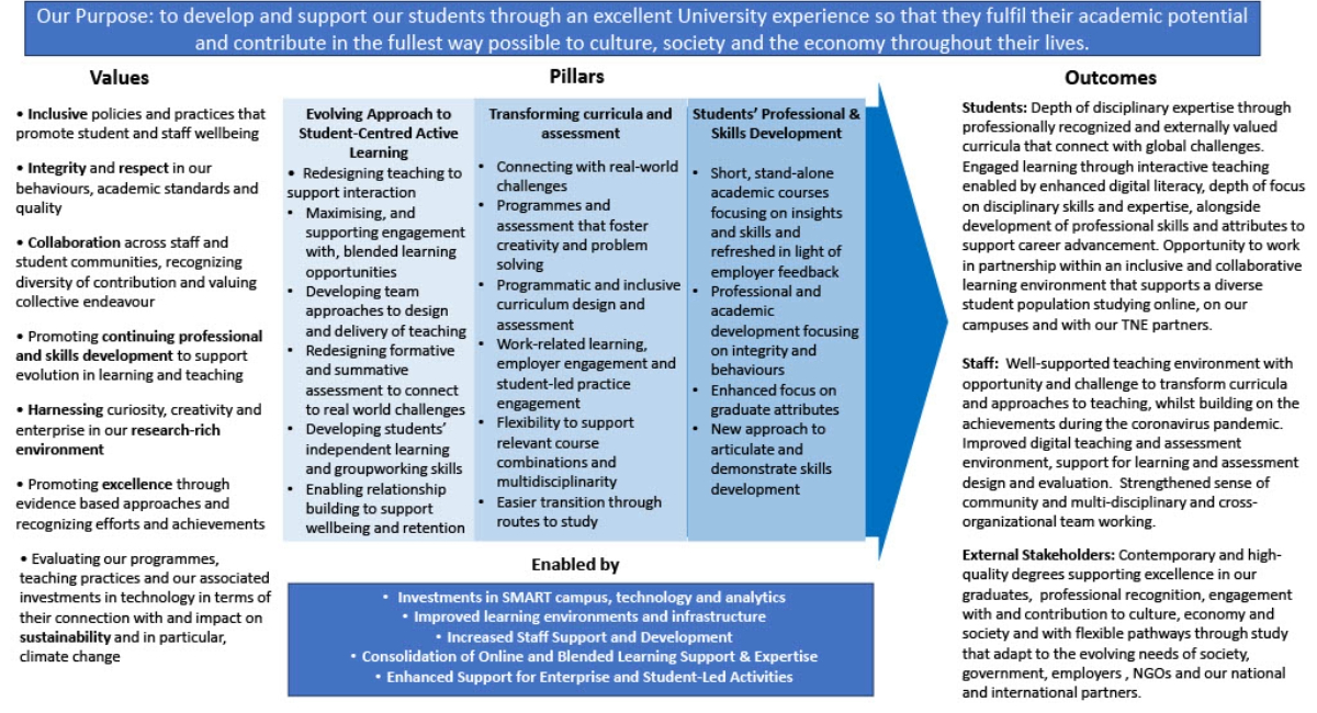 Our purpose is to develop and support our students through an excellent University experience so that they fulfil their academic potential and contribute in the fullest way possible to culture, society and the economy throughout their lives.