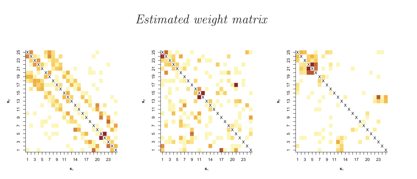 - Merk, M., Otto, P. (2022): Estimation of the spatial weighting matrix for regular lattice data – An adaptive lasso approach. Environmetrics. → Targeted contribution on penalised estimation of spatial structure.